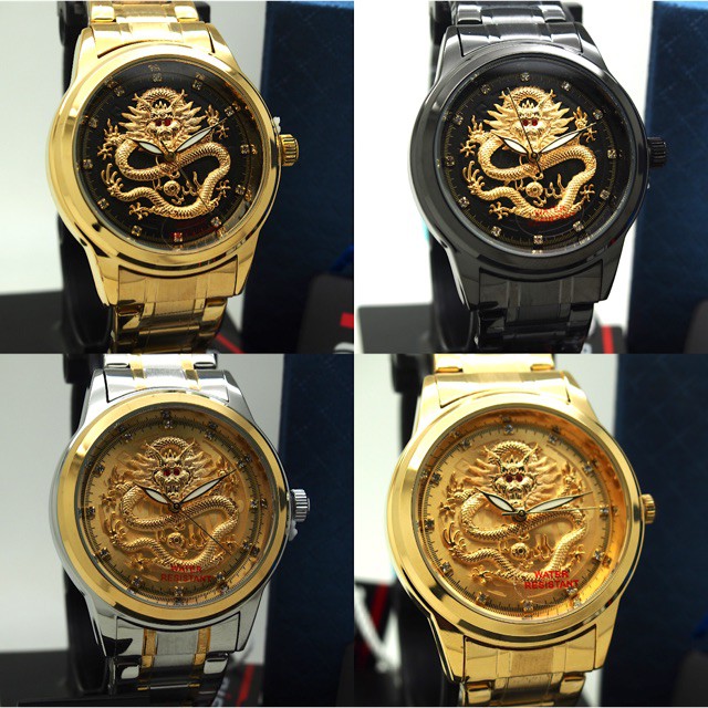 Ristos Original Brand Dragon Series Jam Tangan Lelaki Wanita Perempuan Unisex Naga Emas Gold Murah Shopee Malaysia