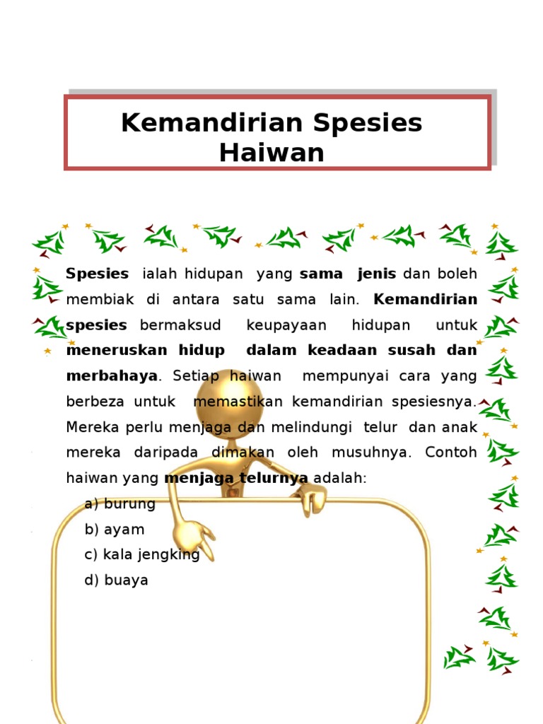 Terdapat beberapa cara haiwan memastikan kemandirian spesisnya. 800 - 900 pagi 1 jam Tema. Kemandirian spesies Other.